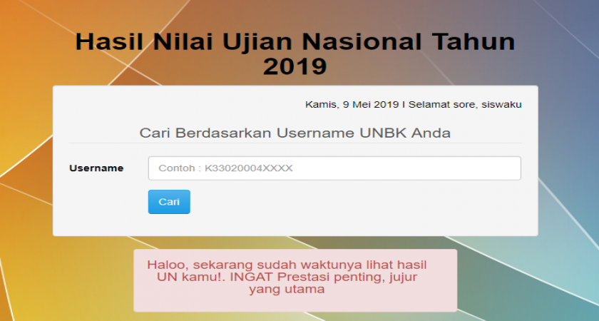 Gunakan username UNBK kalian untuk mengetahui nilai UN.
